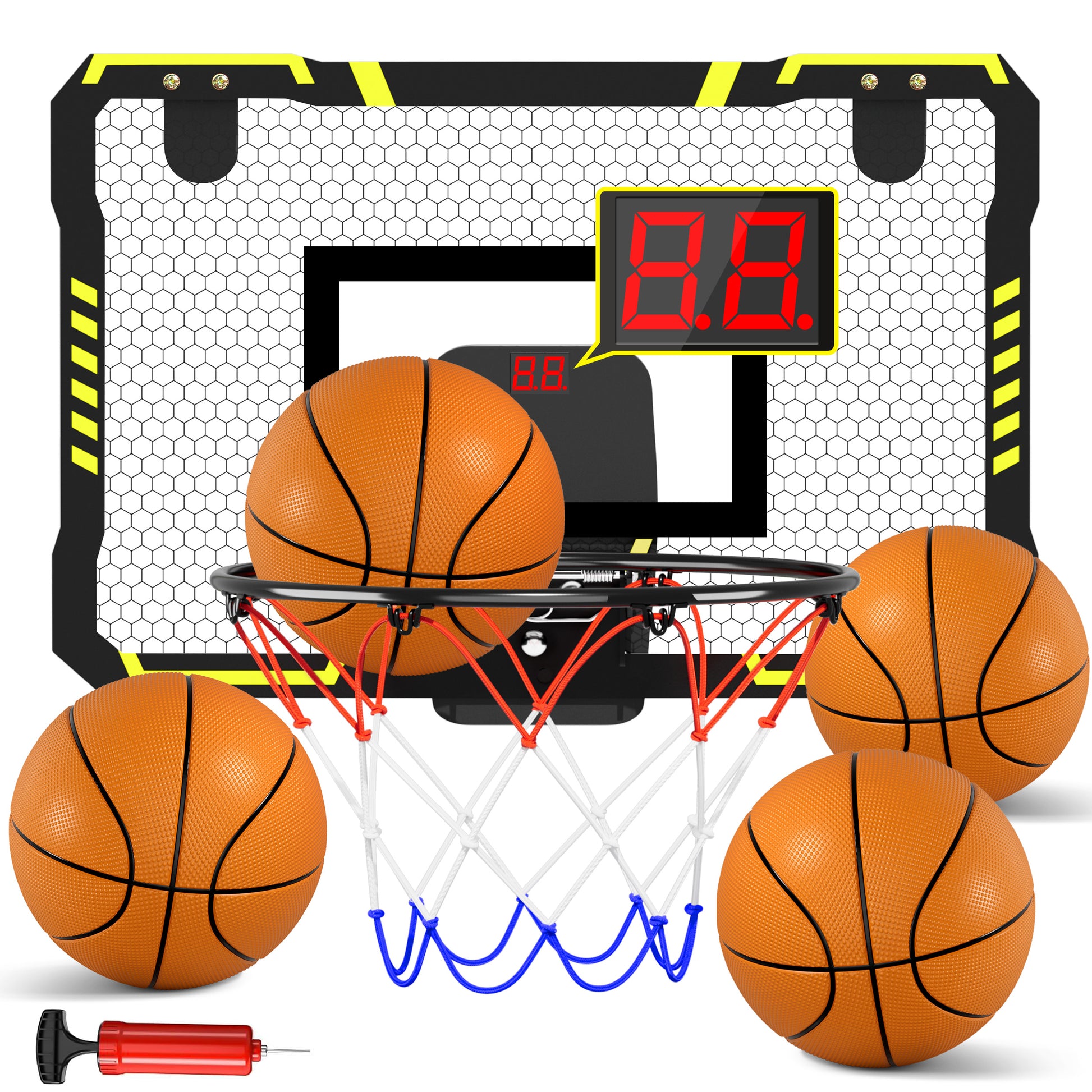 Basketball Hoop Indoor, Mini Basketball Hoop for Kids, Over The Door Basketball Hoop with Electronic Scoreboard & 4 Balls, Basketball Toys for 5+ Years Old Boys Girls