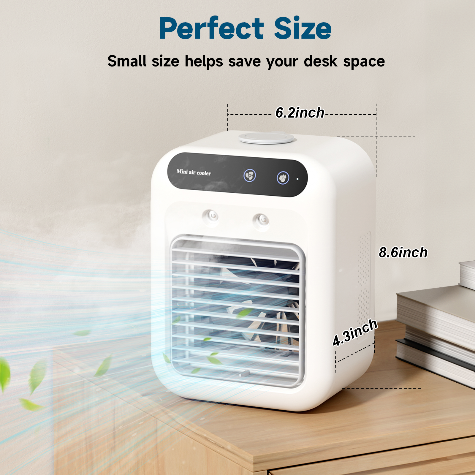 【Energy-Efficient Operation】Acting as a cooling fan and humidification, it is a cute small personal air cooler, a desk fan, and a humidifier. Our evaporative air cooler utilizes energy-efficient technology to keep you cool while minimizing power consumption. Stay comfortable without breaking the bank.